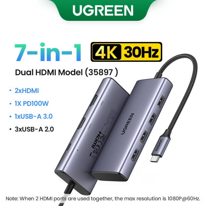 HUB CM498 USB-C to USB-A 3.0+3*USB-A 2.0+2*HDMI+PD port Converter 35897